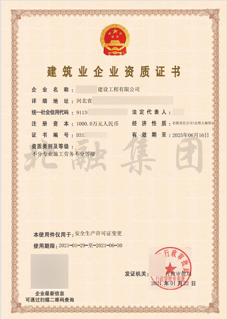 【服务案例说明】 该项建筑工程资质服务完成时间为:2021-02-03,专注为建筑企业资质管理服务,平台公示的资质证书图示均源自经手业务的全流程服务案例,包含资质新办、增项、升级等多元业务场景,可登录平台资质案例库核验真实性。
