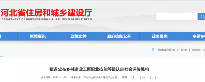 11月17日,省住房城乡建设厅、省人力资源和社会保障厅联合印发通知,公布我省乡村建设工匠职业技能等级认定社会评价机构,河北城乡建设学校...