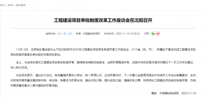 11月13日,住房城乡建设部办公厅在沈阳召开2025年工程建设项目审批制度改革工作座谈会,31个省(区、市)、新疆生产建设兵团工程建设项目审...