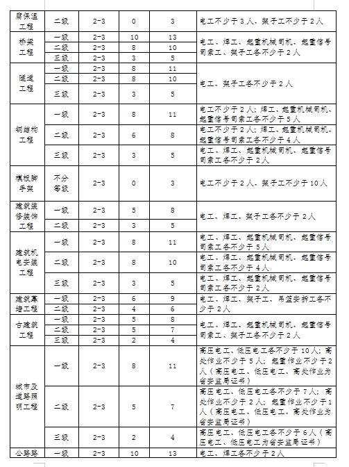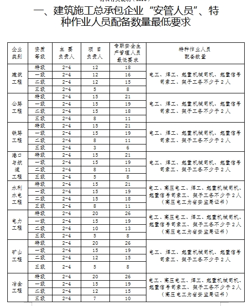 此次新政策的出台,无疑将对建筑企业的安全生产管理产生深远影响。对于广大建筑企业而言,只有严格遵守这些规定,切实履行安全生产主体责任,才能确保企业的持续健康发展。这也将为整个建筑行业的安全生产管理注入新的活力,推动行业向更加规范、安全、高效的方向发展。以下是具体人员要求: