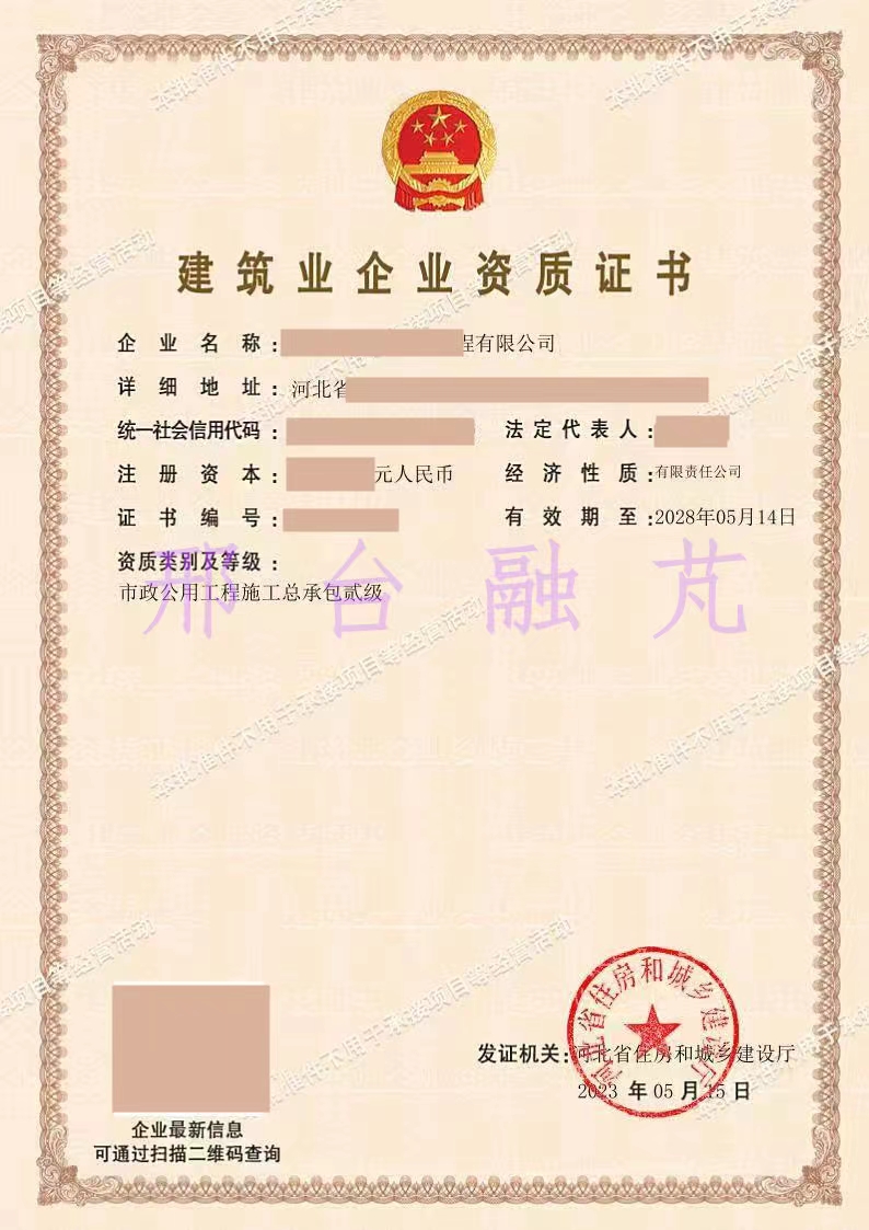转让资质:本公司拥有市政二级资质,带安许,人才证书公司都配套齐全,一手资质,账务干净,无经营,速来!