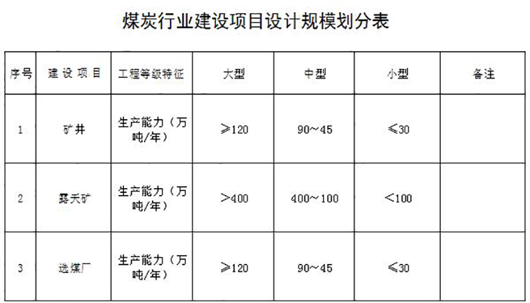 注: 矿井、露天矿设计类型中包括煤炭地下气化、瓦斯抽采及利用工程、废弃物发电、煤伴生物开发利用等综合利用工程;选煤厂设计类型中包括水煤(焦)浆厂、型煤厂。