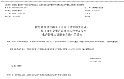 近日,住房城乡建设部印发《建筑施工企业、工程项目安全生产管理机构设置及安全生产管理人员配备办法》。内容如下:第一章 总则第一条 为...