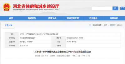 9月28日,省住房城乡建设厅发布公告,明确进一步严格建筑施工企业安全生产许可证动态监管有关事项。2024年12月30日起,省住房城乡建设厅落...