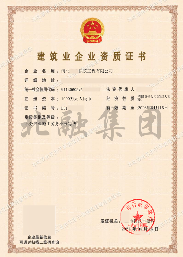 【服务案例说明】 该项建筑工程资质服务完成时间为:2021-04-17,专注为建筑企业资质管理服务,平台公示的资质证书图示均源自经手业务的全流程服务案例,包含资质新办、增项、升级等多元业务场景,可登录平台资质案例库核验真实性。